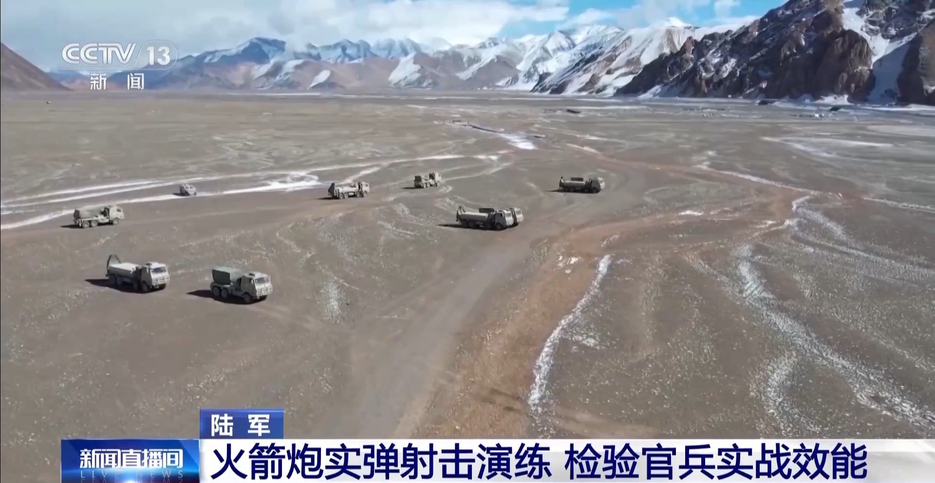近日,新疆军区某火箭炮兵部队在戈壁滩进行实弹火箭炮训练。火箭炮部队注重指挥控制、快速出击、快速撤退、射程远大,在高原和寒冷环境下的全区域攻击中证明了其有效性。