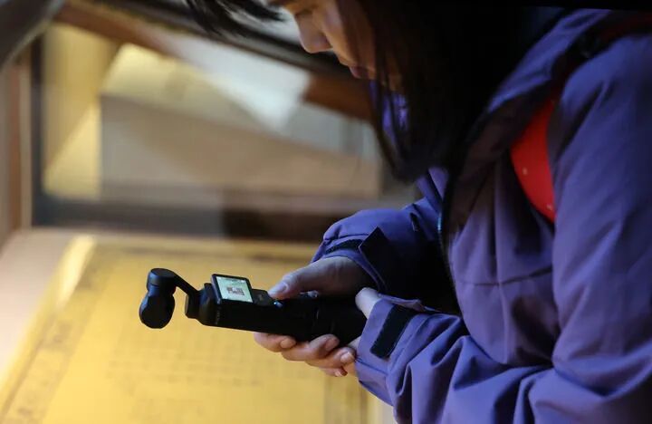 11月28日,媒体人员拍摄了辽宁大连旅顺博物馆展出的《明朝琉球圣旨》复制品。新华社记者 李刚 供图