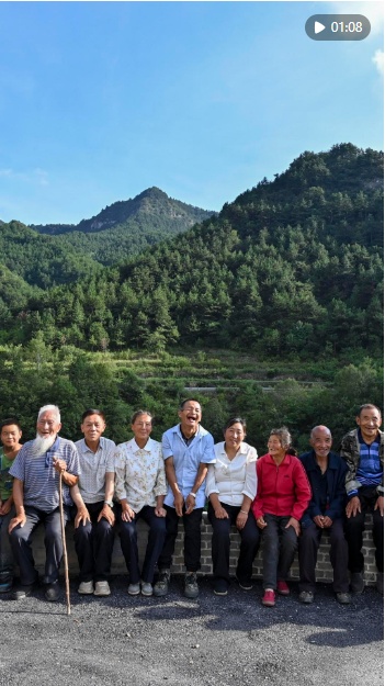 ^ 村民三建国(左)给秦海松剪头发后,两人相视一笑(2025年10月11日摄)。
