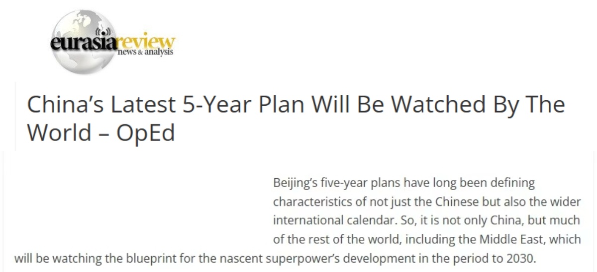 文章认为,中国“十五五”规划建议不仅指引了中国前进方向,也为包括中东地区在内的世界各国与中国发展战略对接提供了宝贵机遇。中国未来至2030年的发展规划必将引起世界的关注。