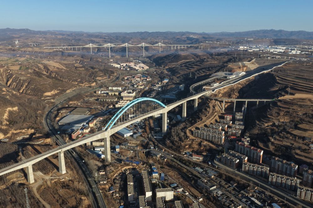 12月25日拍摄的西安高铁王家河大桥(无人机照片)。图片提供:新华社日报列出邢光利。